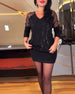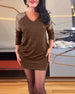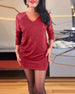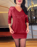 SPESIFIKASJONER Stil: Elegant Materiale: 95% polyester, 5% spandex Kjole type: Tunika Kjolens lengde: Knelengde Halslinje: V-hals Mønstertype: Paljett, Ensfarget Ermetype: Vanlig erme Erme lengde: Langermet Detaljer: Snøre opp Passform type: Vanlig Årstid: Høst, Vinter Anledning: Daglig, Ferie Pakken inkluderer: 1 x Kjole STØRRELSESTABELL (c...