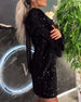 SPESIFIKASJONER Stil: Fest,Sexy Materiale: Bomullsblandinger Kjole type: A-line Kjolens lengde: Knelengde Halslinje: V-hals Mønstertype: Paljett Ermetype: Flaggermus erme Erme lengde: Langermet Passform type: Vanlig Årstid: Høst,Vinter Anledning: Parti Pakken inkluderer: 1 x Kjole STØRRELSESTABELL (cm) Størrelse Bryst Lengde S 95 100 M 1...
