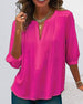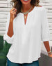 SPESIFIKASJONER Topp type: Bluser Stil: Uformelt, Forretning Materiale: 100% Polyester Anledning: Daglig, Arbeid Halslinje: V-hals Mønstertype: Ensfarget Ermetype: Vanlig erme Erme lengde: 3/4 erme Passform type: Vanlig Årstid: Vår, Sommer Detaljer: Rynket Pakken inkluderer: 1 x Bluse STØRRELSESTABELL (cm) Størrelse Bryst Lengde...