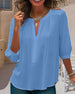 SPESIFIKASJONER Topp type: Bluser Stil: Uformelt Materiale: Bomullsblandinger, Blonder Anledning: Daglig Halslinje: V-hals Mønstertype: Ensfarget Ermetype: Pufferme Erme lengde: 3/4 erme Passform type: Vanlig Årstid: Vår, Sommer, Høst Detaljer: Lappeverk, Uthult Pakken inkluderer: 1 x Bluse STØRRELSESTABELL (cm) Størrelse Bryst(cm...