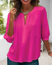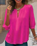 Ensfarget bluse med V-hals og plissert