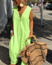 Uformell genser i ensfarget V-hals