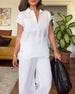 Ensfarget Kortermet Sommer-T-Skjorte med Rund Hals