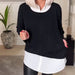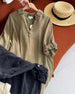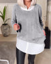 Uformelt jakkeslag i todelt topp med patchwork og lange ermer