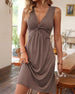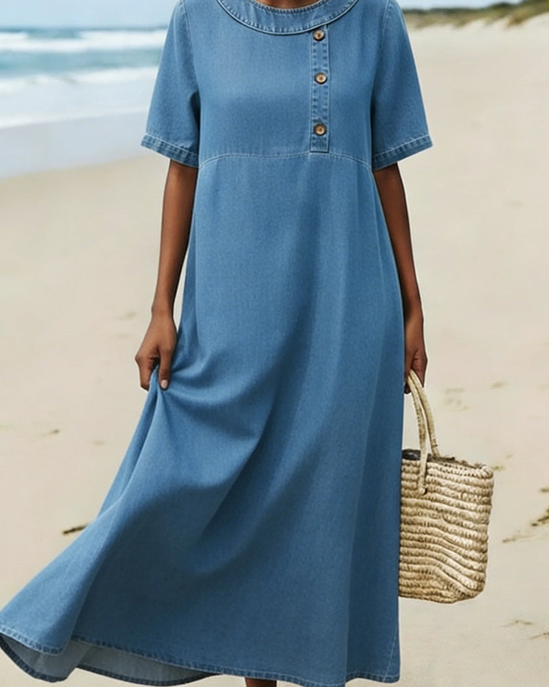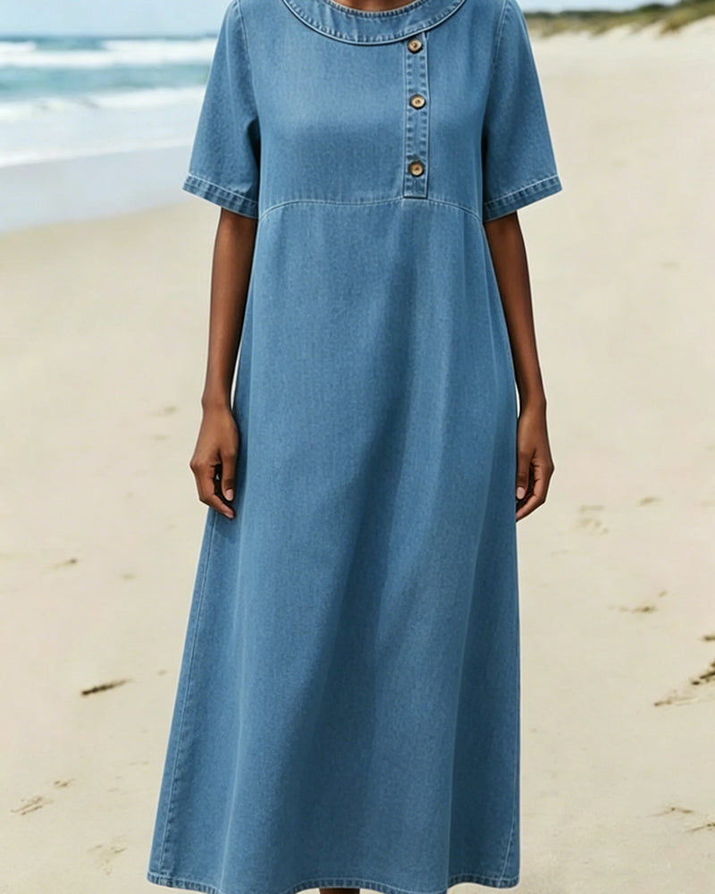 Kjole V-Utringning Trykk Innsnørt Midje Knappefront