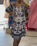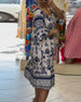 Icon1 Kjole Rund Hals Trykket Trompet Korte Ermer