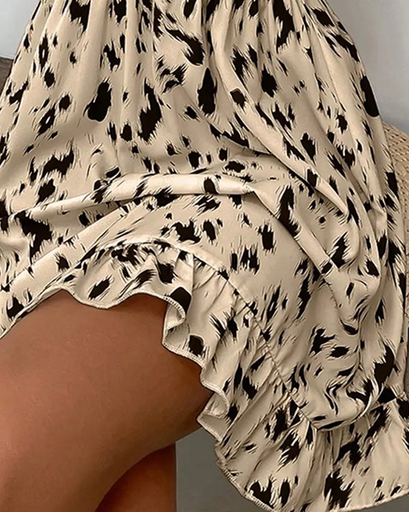 Kjole V-Utringning Trykk Innsnørt Midje Knappefront