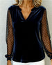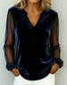 SPESIFIKASJONER Topp type: Topper Stil: Uformelt Materiale: Mesh,Fløyel Anledning: Daglig Halslinje: V-hals Mønstertype: Ensfarget Ermetype: Vanlig erme Erme lengde: Langermet Passform type: Vanlig Årstid: Høst,Vinter Pakken inkluderer: 1 x Topp STØRRELSESTABELL (cm) Størrelse Bryst Lengde S 97 68 M 101 69.5 L 105 71 XL 111 72.5 2X...