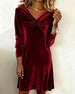 Fløyelskjole Med V-Hals Og Tvistet Knute Med Lange Ermer