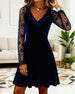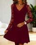SPESIFIKASJONER Stil: Uformelt Materiale: Bomullsblandinger Kjole type: A-line Kjolens lengde: Over kneet Halslinje: V-hals Mønstertype: Ensfarget Ermetype: Vanlig erme Erme lengde: Langermet Detaljer: Blonder Passform type: Vanlig Årstid: Høst,Vinter Anledning: Daglig Pakken inkluderer: 1 x Kjole STØRRELSESTABELL (cm) Størrelse Bryst L...