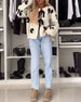 Uformell denimkåpe med jakkeslag med knapper og lange ermer