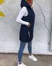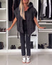 Ermeløs polstret jakke med hette med glidelås