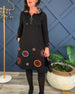 Uformell kjole med hette og hette med sirkeltrykk