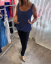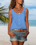 Ensfarget v-hals ermeløs topp