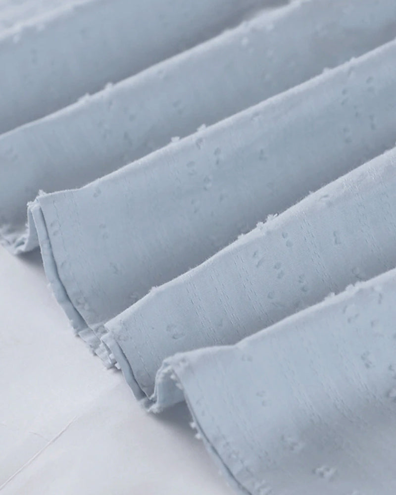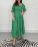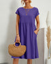 Ensfarget Midi Kjole i Bomull og Lin