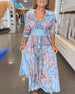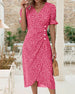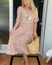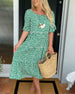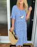 Uformell printet kjole med V-hals og halve ermer
