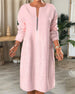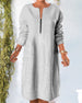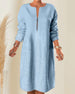 Ensfarget løs kjole i bomull og lin