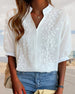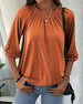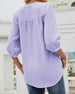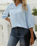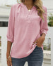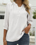 Uformell bluse med v-hals i ensfarget med knapp