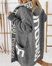 Løs lang cardigan med bokstavtrykk