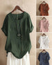 Ensfarget Kortermet Sommer-T-Skjorte med Rund Hals