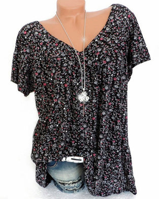 V-hals Løs Kortermet Uformell T-skjorte