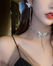 Rhinestone Butterfly Tassel Chain Halskjede øredobber