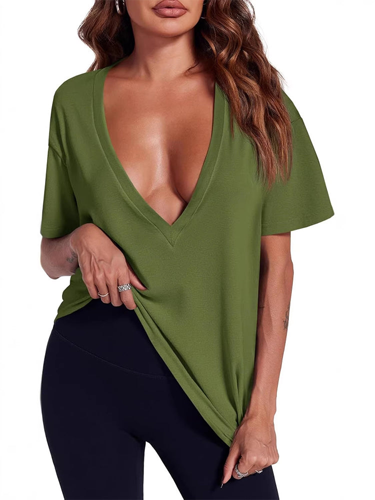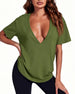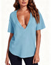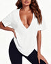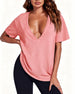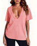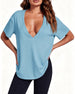 Topp Uregelmessig Kant Ensfarget V-Hals
