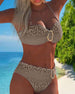 SPESIFIKASJONER Stil: Ferie Materiale: 15% Spandex,85% Polyester Anledning: Ferie Halslinje: Spaghetti stropper Mønstertype: Trykt,Leopard Erme lengde: Ermeløs Topp type: Bikini BH type: Bøyle-fri BH Truse type: Naturlig Passform type: Vanlig Årstid: Vår,Sommer Detaljer: Ryggløs,Snøre opp,Snøring Pakken inkluderer: 1 x Bikini STØRRELSESTABELL ...