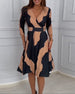 SPESIFIKASJONER Stil: Uformelt Materiale: 95% Polyester, 5% Spandex Kjole type: A-line Kjolens lengde: Knelengde Halslinje: Rund hals Mønstertype: Prikk Ermetype: Vanlig erme Erme lengde: Halv erme Detaljer: Rufsete Passform type: Vanlig Årstid: Vår, Sommer Anledning: Daglig Pakken inkluderer: 1 x Kjole STØRRELSESTABELL (cm) Stø...