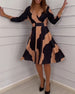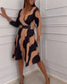Uformell printet kjole med V-hals og halve ermer